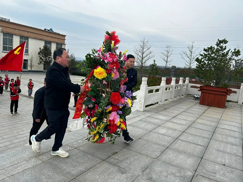 党员代表为烈士们敬献花篮,党支部书记李耀强整理花篮缎带并深深三鞠躬,以表对烈士们的追思。